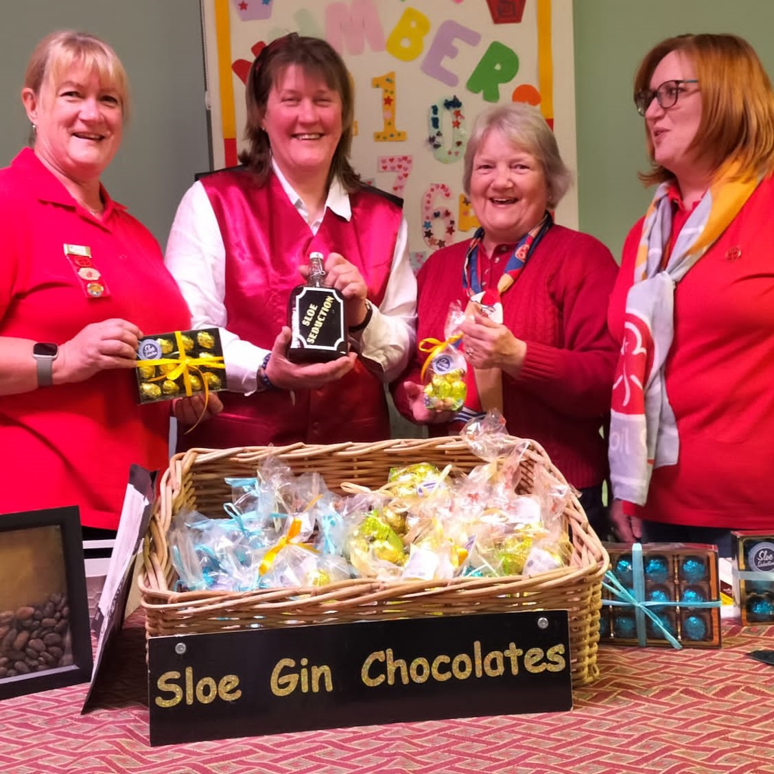 The sloes that she uses to make the sloe gin come from the Kent countryside. Once the sloes have been picked, they are soaked in gin, the gin slowly infuses the sloes – after which its added to a ganache and piped into chocolate shells, creating gorgeous treats for her customer, we sampled some at our meeting, pure heaven!