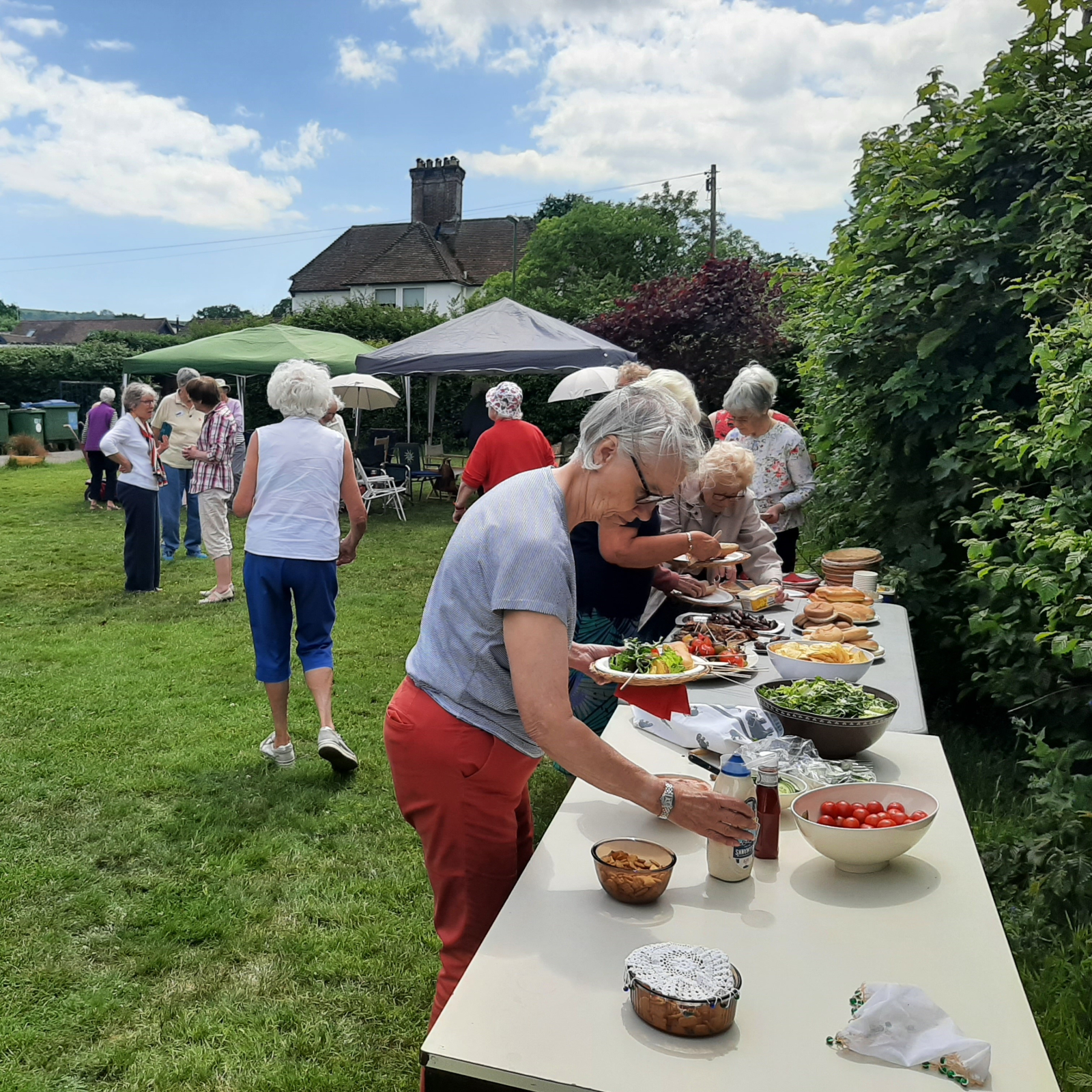Members enjoying a delicious BBQ lunch in perfect weather.