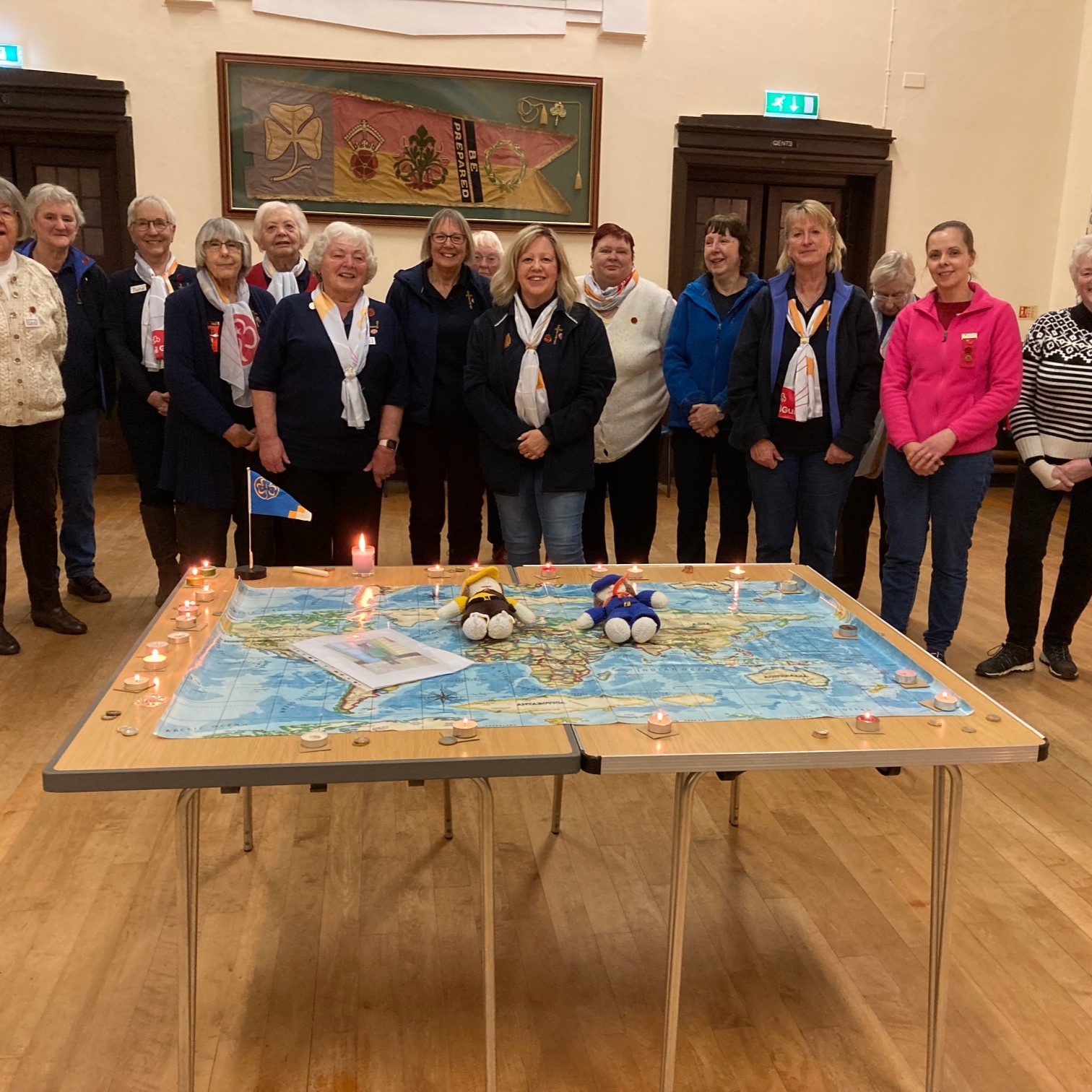 As part of our Thinking Day celebration members shared anecdotes of their lives in guiding. Several members recounted travelling to guide camp in the back of a lorry, cooking on open fires and meeting Lady Baden Powell at Girlguiding events. The evening finished with the lighting of candles by each member who dedicated their candle to a country where there are guides. There was also the enrolment of a new member, the renewal of the Promise and singing of taps.
