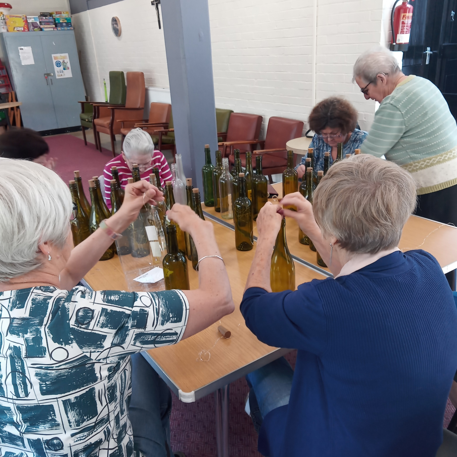 As a little gift for everyone to take home we made some guiding lights. The fun part was drinking the wine and then saving the bottles. Threading the fairy lights into the bottles was fiddly but worth the effort.