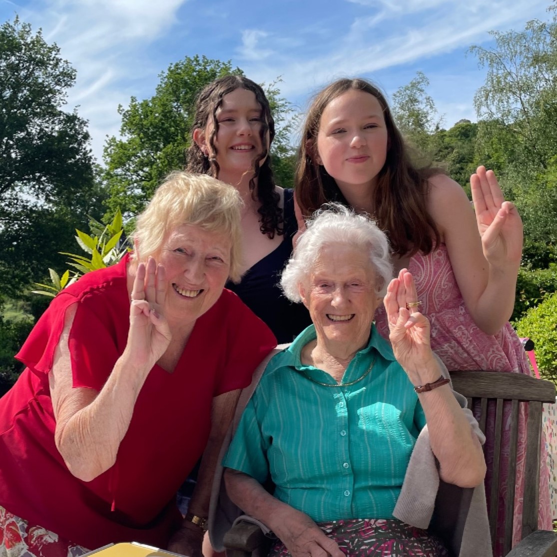 Joyce Douglas celebrated her 100th Birthday in May. A member of the Guide movement since joining the Brownies at All Hallows, Allerton, Liverpool in 1933 Joyce (also known as Joyce Culshaw and Wainwright) was Captain of 220th Liverpool Oakvale company for many years as well as holding many other positions including being a Camp Adviser and Vice President of Merseyside South. She is pictured here with her cousin Barbara and one time Lieutenant as well as some new members of the movement. Now living in Haslemere near her son Andrew, she attributes her longevity in part to keeping the company of younger people!