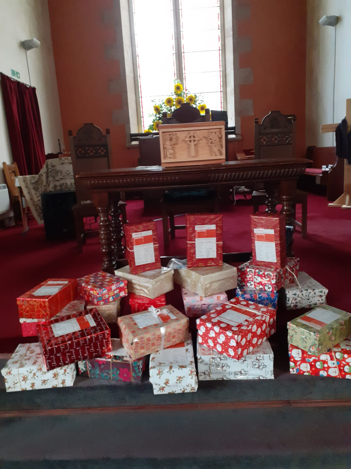 Members contributed filled shoe boxes, to the Blythswood shoe box appeal, which were Blessed at Strathpeffer Church of Scotland before going to Blythswood