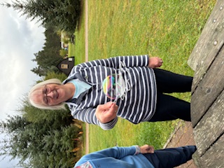 The ladies took part in either a Feely Trail or a quiz, various crafts and were entertained by Ian who was introduced as a genealogist so we were expecting a talk on family history, but we think they meant genie-ologist as he performed various magic tricks. The afternoon came to a close with songs around the camp fire. A fun day was had by everyone.