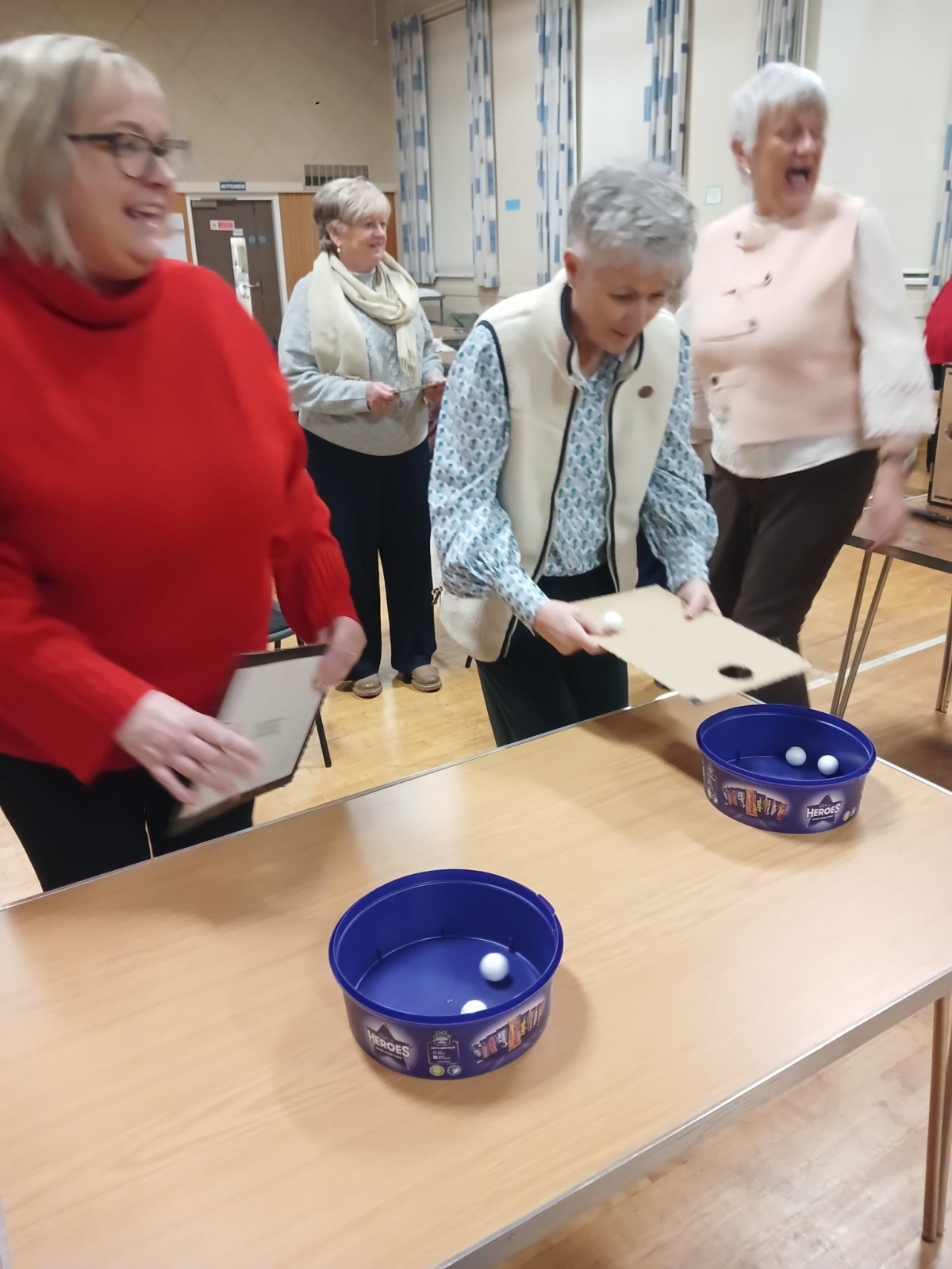 Portadown guild invited other members from Armagh for a night of fun and friendship to celebrate 100years of World Thinking day. The games that were played used cardboard boxes and other recycled materials. Some of the games needed two people while others were simple challenges of get the ball into the sweet box without using your hands. After the games tea and biscuits were served which meant that people got a chance of talking to their friends from other guilds